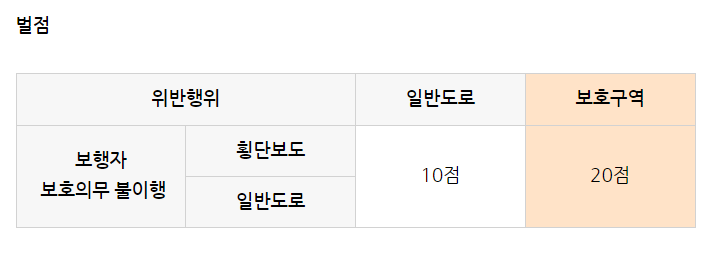 횡단보도 우회전 규정위반 범칙금 벌점