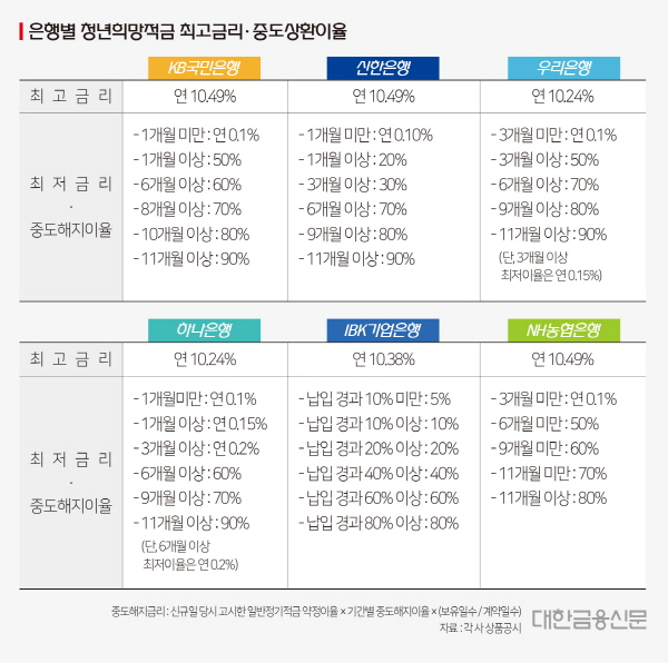은행 별로 우대금리 차이가 상이하듯이 중도해지 금리 또한 차이가 존재합니다. 중도해지 금리란 적금을 중도에 해지할 경우 중도해지 금리에 맞춰서 이자를 계산해서 돈을 돌려주는 것입니다.