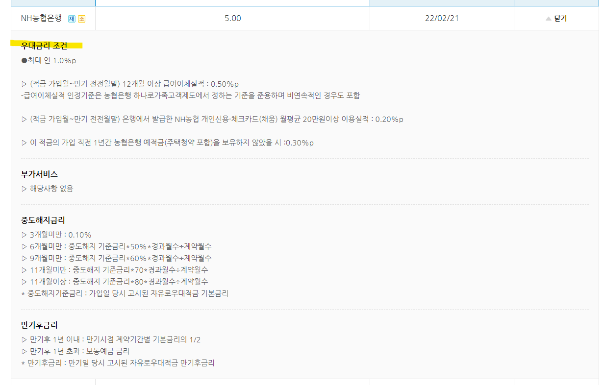 각 중도해지 금리 또한 위 사이트에서 확인이 가능하니 반드시 조건을 확인하셔야 되겠습니다.